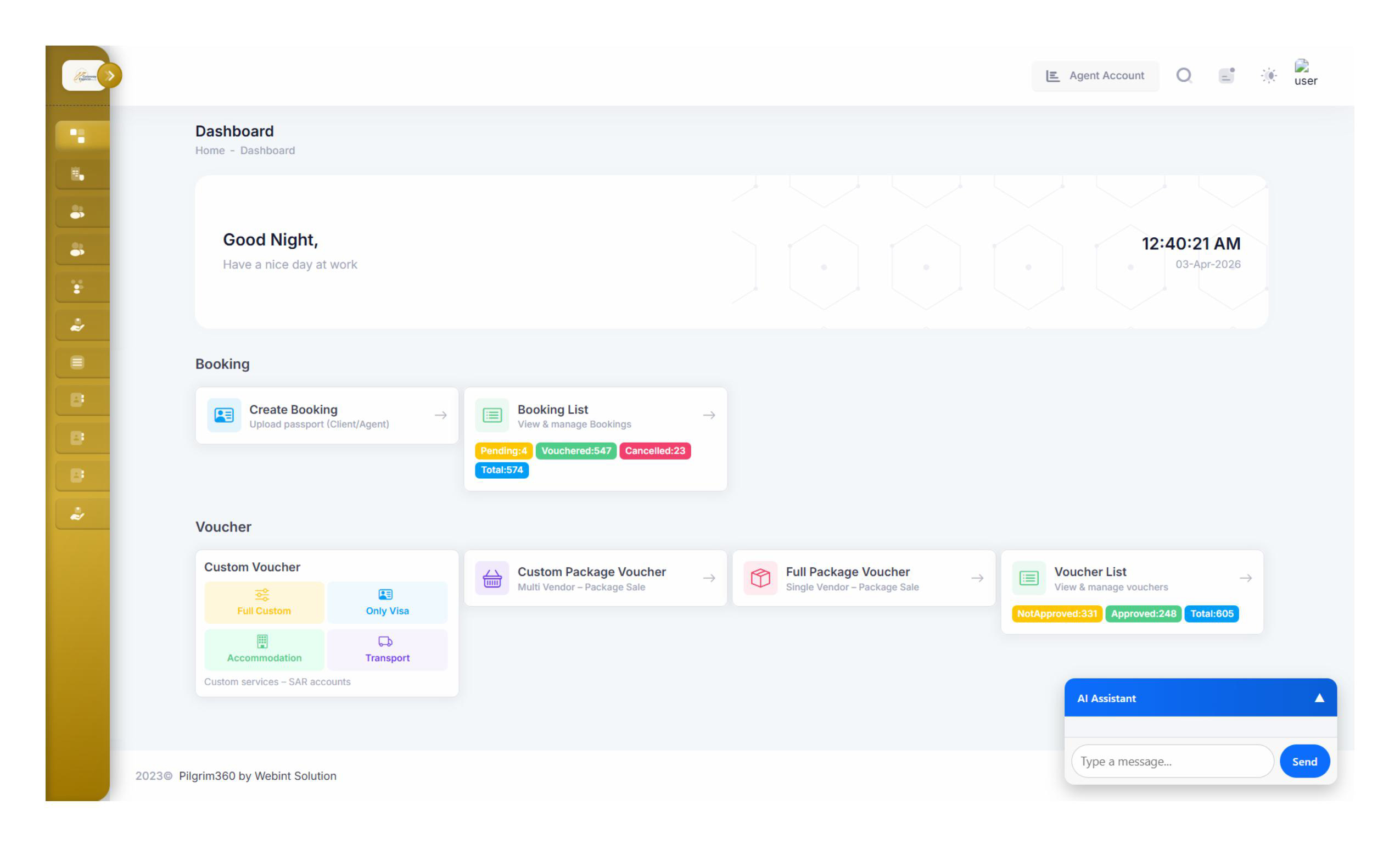 Manage bookings, Umrah packages, and travel workflows efficiently.