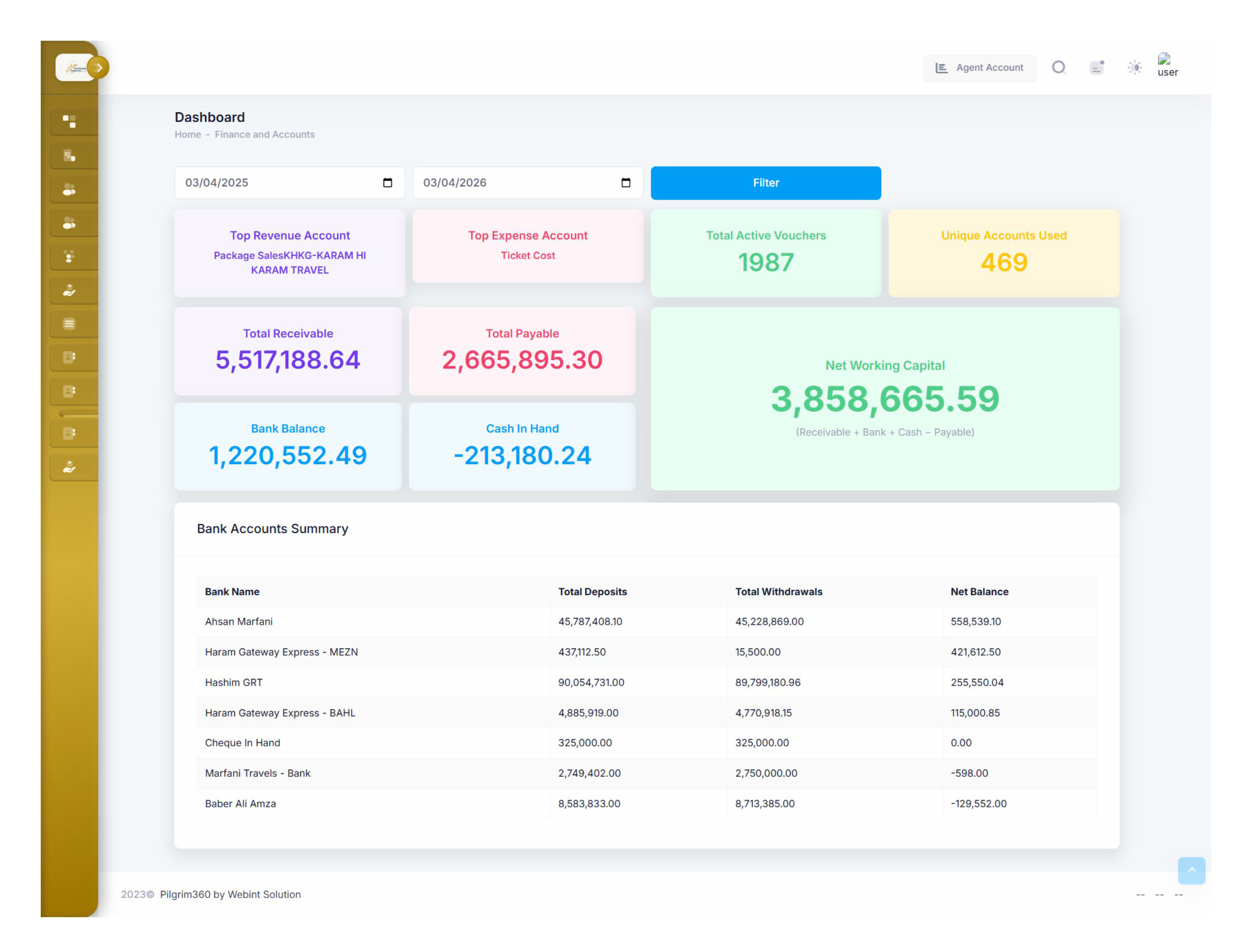 Running a travel agency or Umrah business requires managing multiple operations from bookings and vendors to accounts and reporting. Harmain360 centralizes your entire workflow and gives you real-time control.